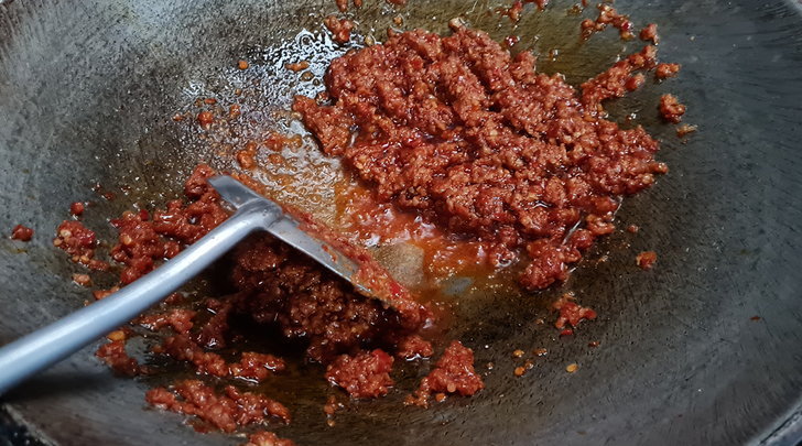 ถ้าเครื่องแกงนั้นแห้งไปอาจเติมน้ำซุปลงไปเล็กน้อย เพื่อไม่ให้ไก่ติดกระทะ ผัดจนไก่สุ ก