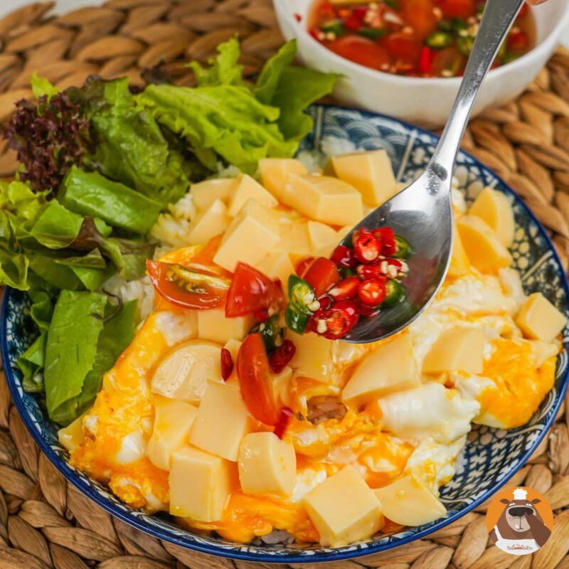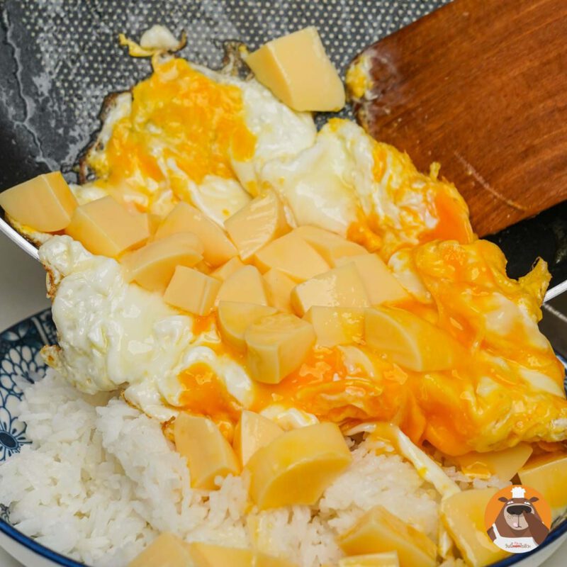 วิธีทำ ข้าวราดไข่ขยี้เต้าหู้ไข่