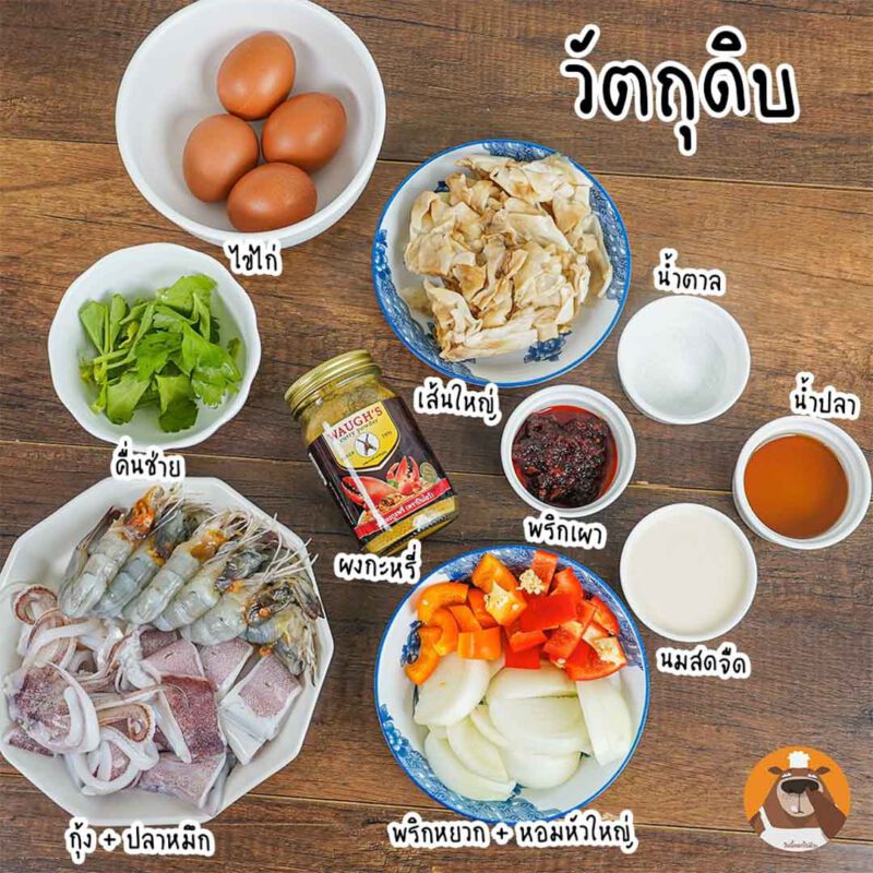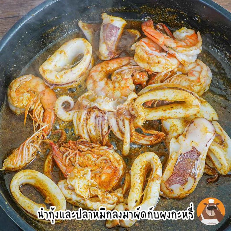 วิธีทำ เส้นใหญ่ทะเลผัดผงกะห รี่