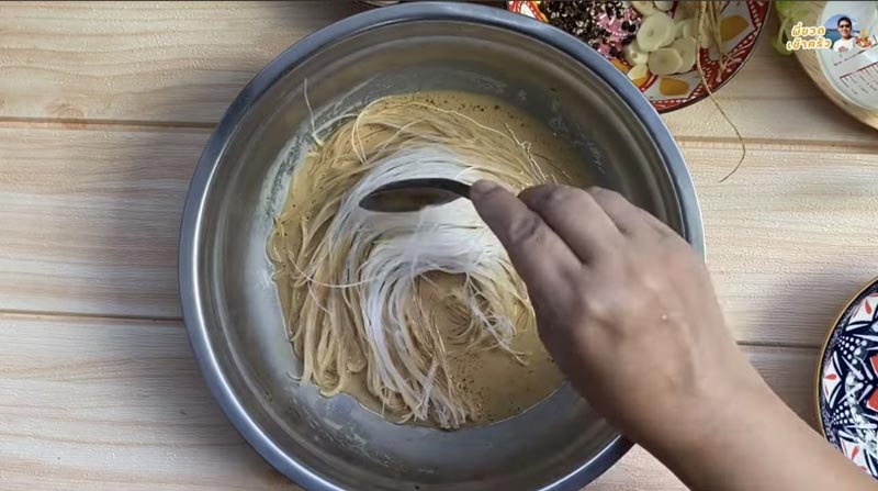 3. ใส่วุ้นเส้นแช่น้ำแล้วพักไว้