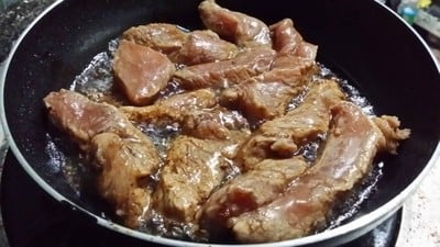 2.พอครบเวลาแล้วนำไปทอดด้วยน้ำมันท่วม ๆ ใช้ไ ฟกลาง ทอดจนสุ กทั้ง 2 ด้าน เพียงเท่านี้ก็ได้เมนูหมูทอดซอสอร่อย ๆ
