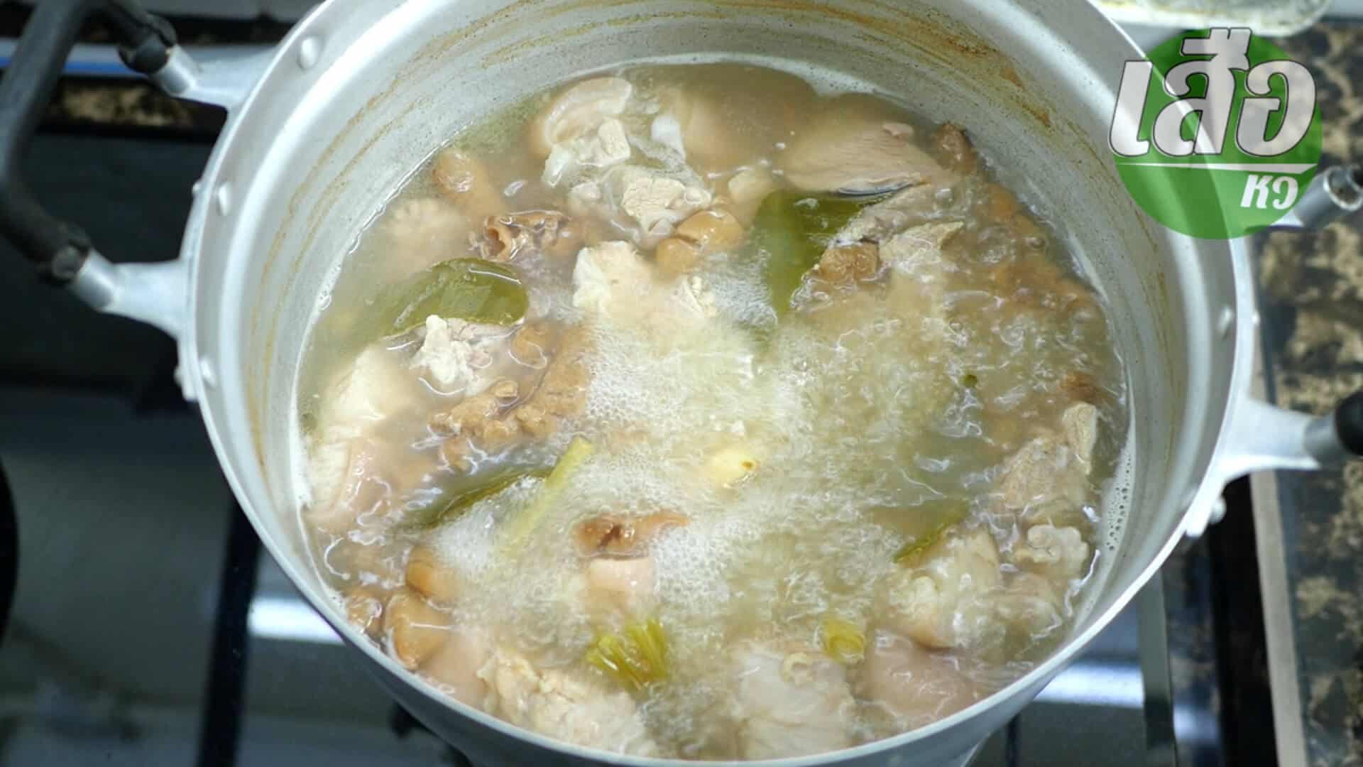 คอยช้อนฟองออกเพื่อให้น้ำซุปใส