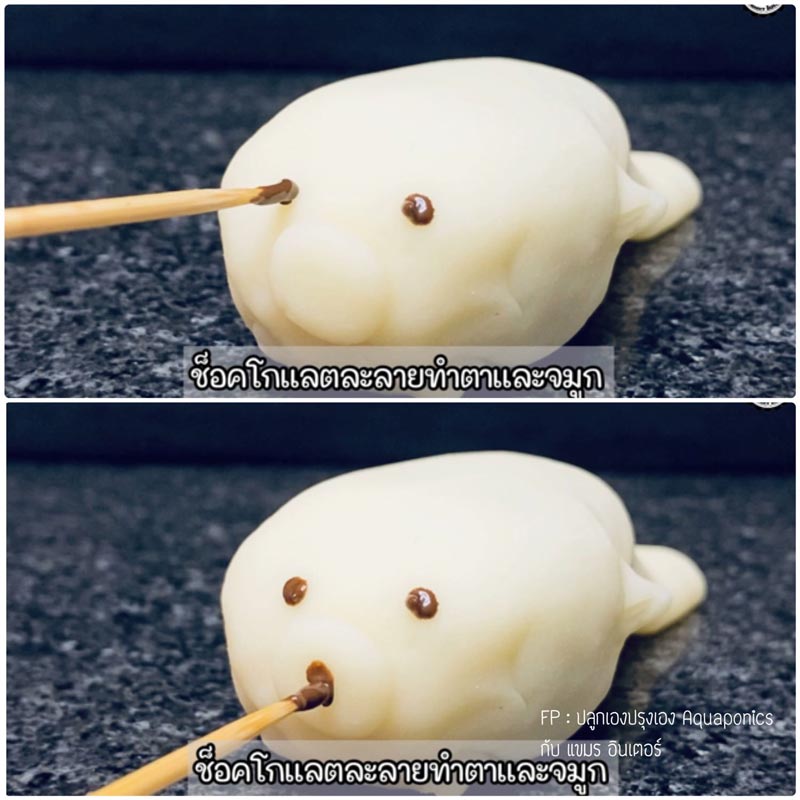☆ นำช็อกโกแลตละลายไมโครเวฟหรืออย่ างอื่นตามชอบมาตกแต่งต า และปากของอุ๋งอุ๋ง