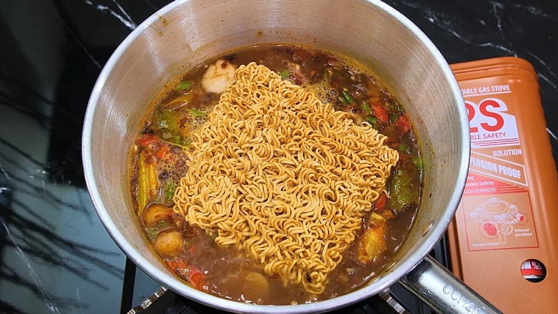 ☆ เมื่อน้ำเดือดจัด ใส่บะหมี่กึ่งสำเร็จรูปลงไป 2 ห่อใหญ่