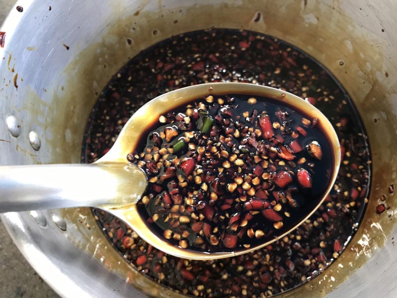 ► น้ำจิ้มทำไม่ยาก ใช้ซีอิ๊วดำ ผสมน้ำเชื่อม น้ำส้มสายชู พริกแดงตำหรือสับตามชอบ นำไปเคี่ยวจนเดือดให้พริกสุก