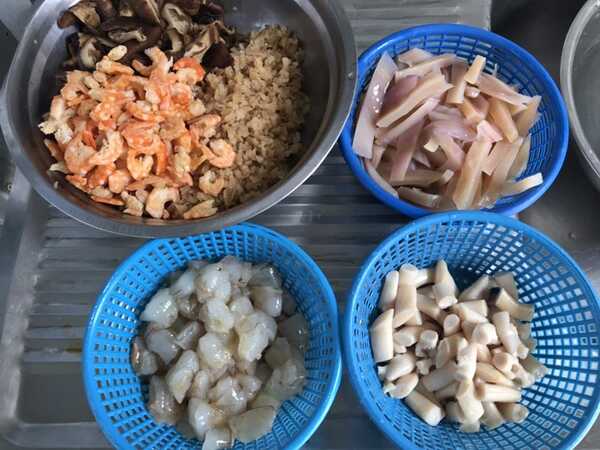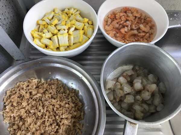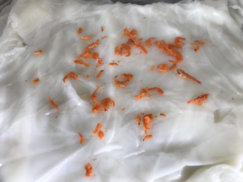 ► กุ้งเหลือจากขายเป็นเศษเล็กเศษน้อยก็เอาออกมาหั่นท่อน