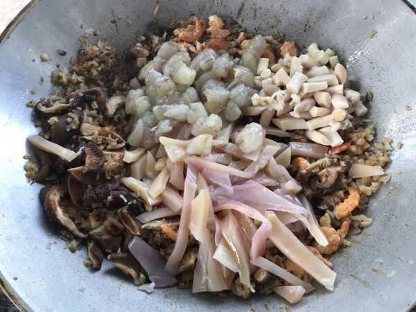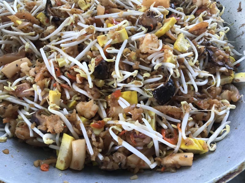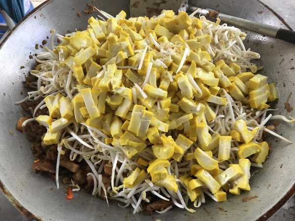 ผัดจนสุกหอมใส่ไชโป๊ลงไปผัด ตามด้วยเครื่องทะเล ปรุงรสด้วยซีอิ๊วขาว น้ำปู และซอสปรุงรสฝาเขียว