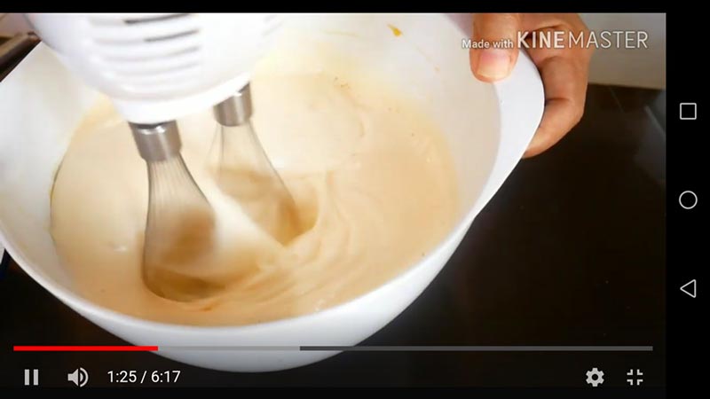 ☆ ใส่เกลือและตีต่อให้ส่วนผสมเข้ากัน หลังจากนั้นใส่กลิ่นมะลิหรือกลิ่นมะพร้าว ตีต่อประมาณ 5 นาทีให้ส่วนผสมขึ้นฟู