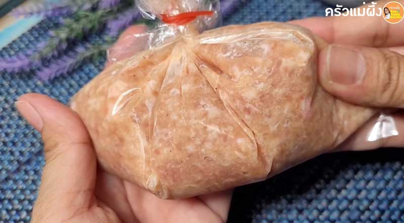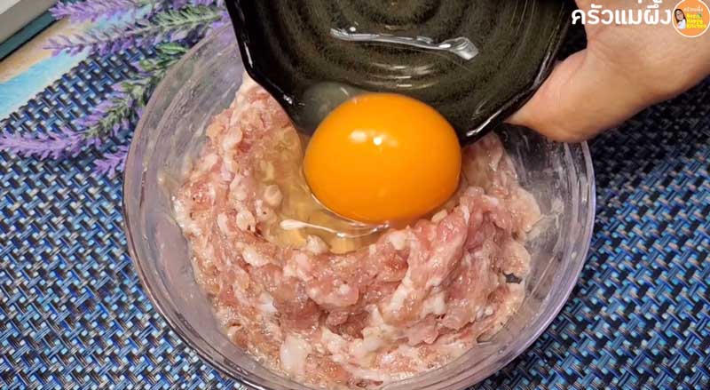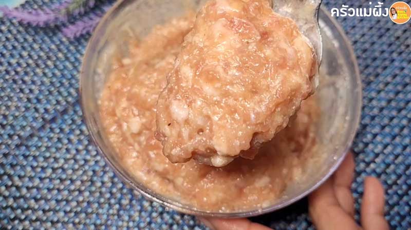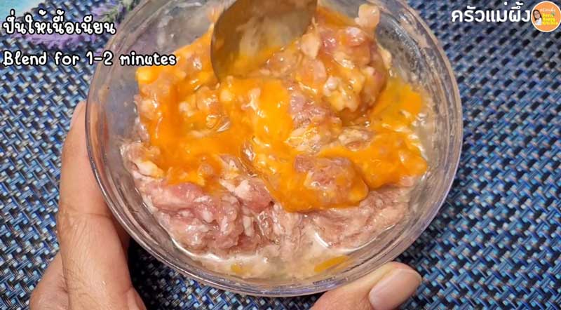 ► นำส่วนผสมทุกอย่างมาปรุงกับหมูสับ