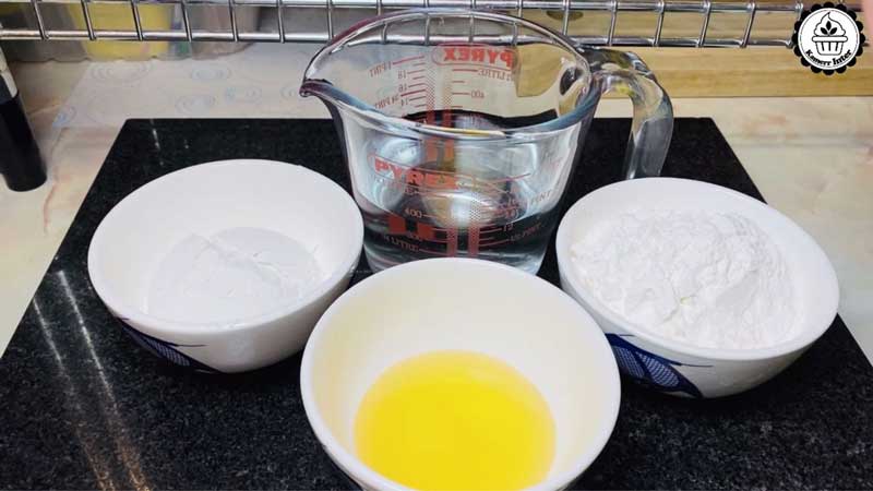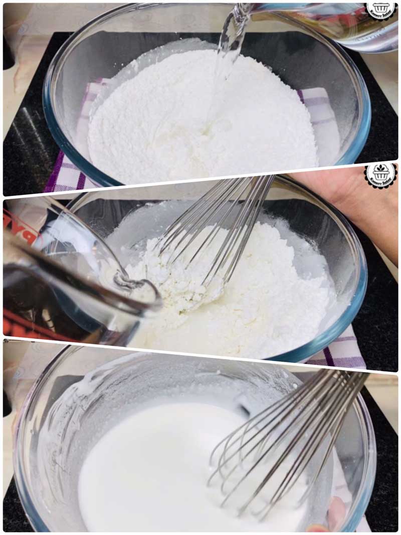 ► เติมน้ำครึ่งหนึ่งก่อน และคนให้ทุกอย่างเข้ากัน ค่อย ๆ เติมและค่อย ๆ คนไป ไม่ให้แป้งเป็นเม็ด จนส่วนผสมทุกอย่างเข้ากันดี
