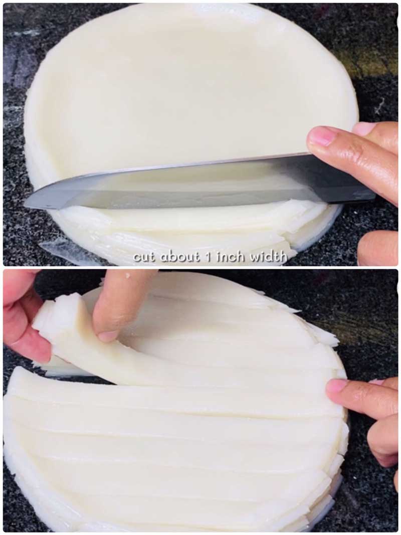 ► แต่ละชั้นที่เอาแป้งมาทับกันต้องแปรงน้ำมันทุกครั้ง กันไม่ให้เขาติดกัน เสร็จแล้วตัดตามขนาดที่ต้องการได้เลย