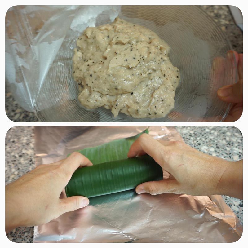 พอครบเวลาแล้วก็เอามานวดด้วยมือ 5-10 นาที จากนั้นก็ห่อด้วยใบตองและฟอยล์ (มีวิธีทำแบบละเอียดในวิดีโอค่ะ)