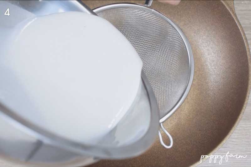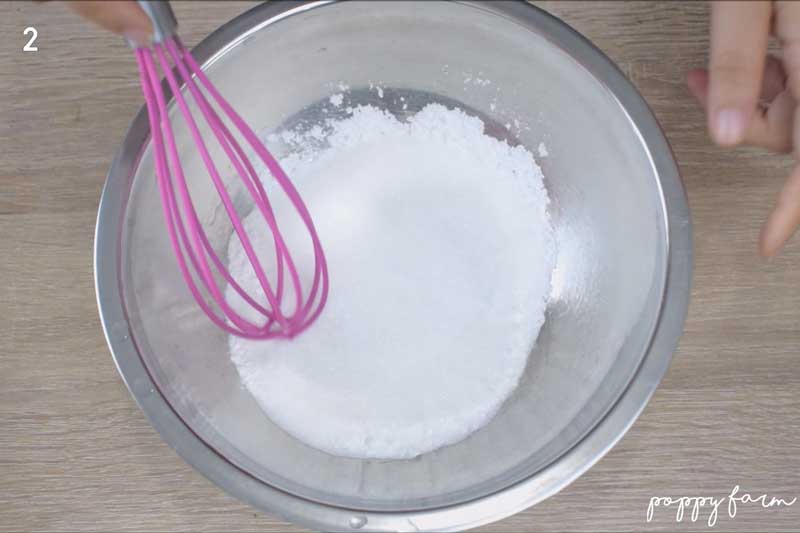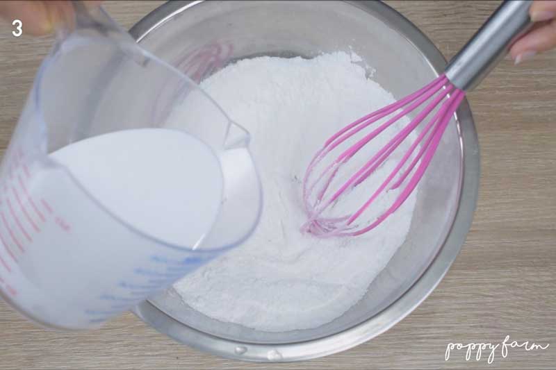 ► ผสมของแห้ง ได้แก่ แป้งข้าวเจ้า แป้งข้าวเหนียว น้ำตาลทราย และเกลือ