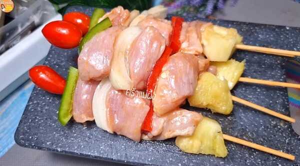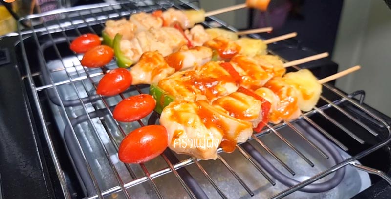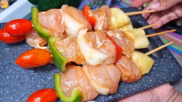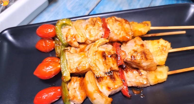 ◇ นำบาร์บีคิวมาเสียบไม้ ให้ดูสีสันสวยงามน่ากินสุด ๆ