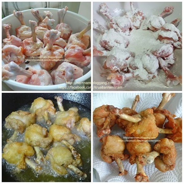1. ล้างทำความสะอาดน่องไก่ พักให้สะเด็ดน้ำ