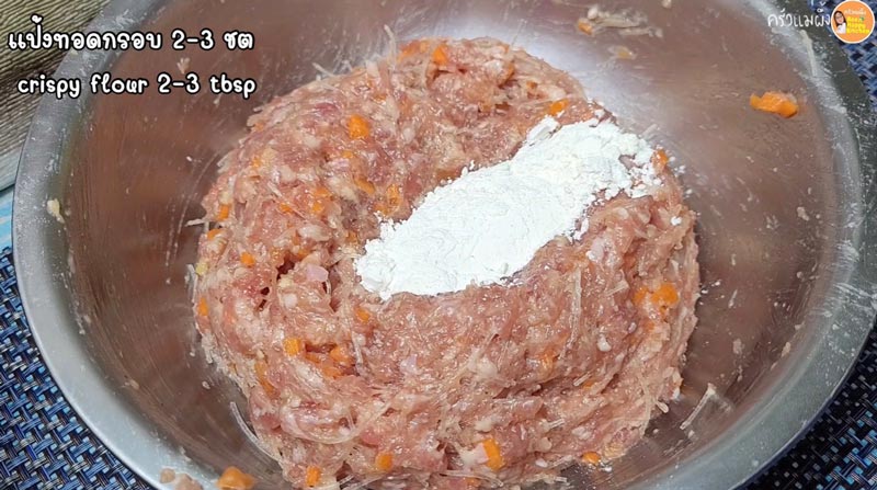 ► ใส่แป้งทอดกรอบลงไป เพื่อทำให้หมูทอดกรอบนอกนุ่มใน อร่อยมาก