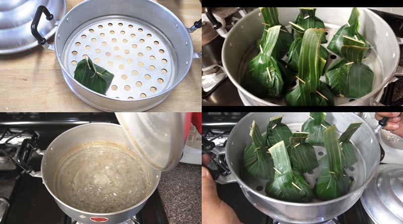 ► ห่อแล้วนำใส่ซึ้งเตรียมที่จะนึ่งค่ะ ตั้งน้ำให้เดือดก่อนแล้วก็นำห่อหมกลงไปนึ่งค่ะ