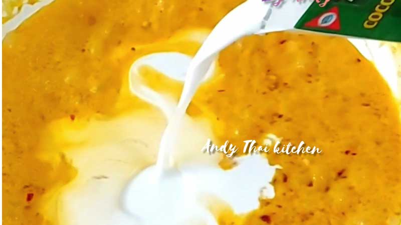 ► เติมกะทิที่เหลือลงไป คนให้เข้ากัน