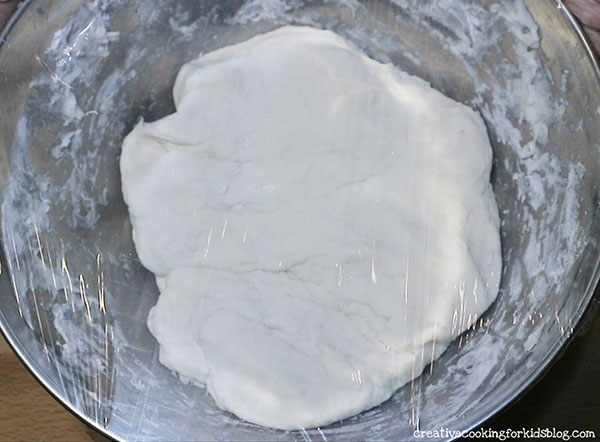 • นวดให้เข้ากันแล้วคลุมด้วยพลาสติกแรป ทิ้งไว้ประมาณ 30 นาที หรือจนแป้งขึ้นเป็น 2เท่า