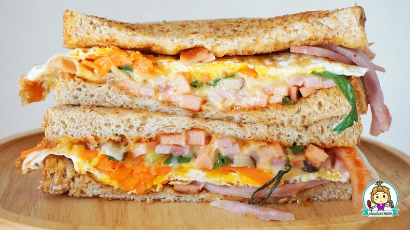 แจกสูตรทำ “ขนมปังโทสต์ไข่แฮมชีส” อาหารเช้าสไตล์เกาหลี ไส้แน่นเครื่องเยอะ (ดูส่วนผสม)