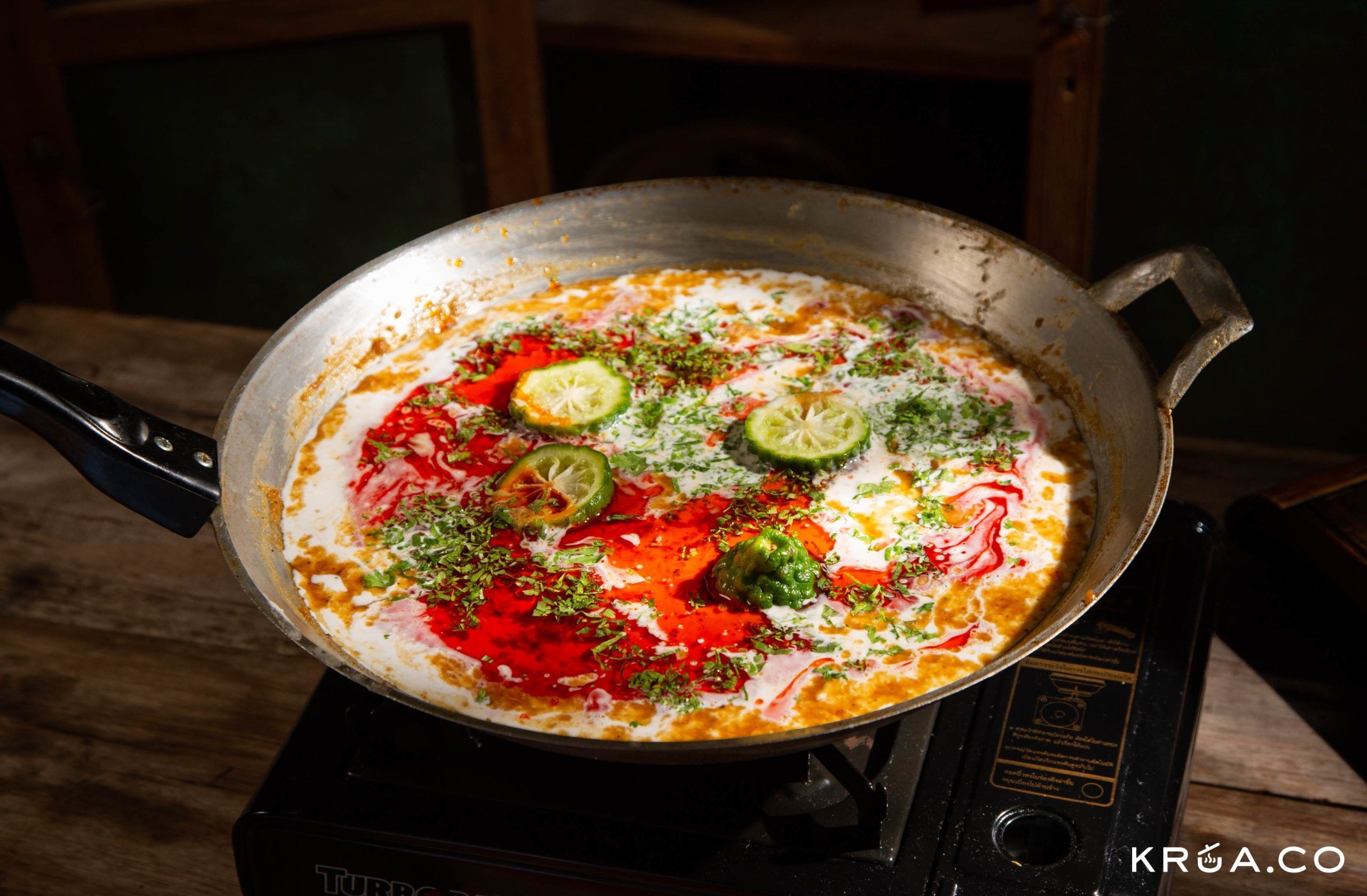 - มะกรูดหั่นครึ่งคั้นน้ำออก (เอาเม็ดออก) สำหรับลอยหน้า
