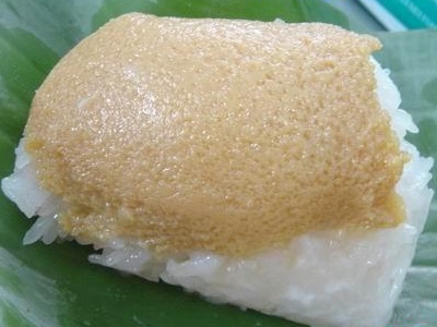 4.ตักข้าวเหนียวใส่จาน เสิร์ฟพร้อมสังขยาเนื้อนวล …แค่นี้ก็อร่อยแล้ว^^