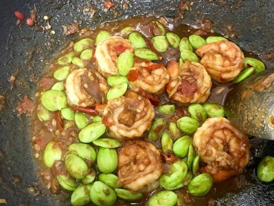 4.ใส่สะตอแกะผ่าครึ่ง ผัดจนสุก จากนั้นปรุงรสด้วยน้ำปลา และมะนาวค่ะ ผัดต่อให้เข้ากันดี