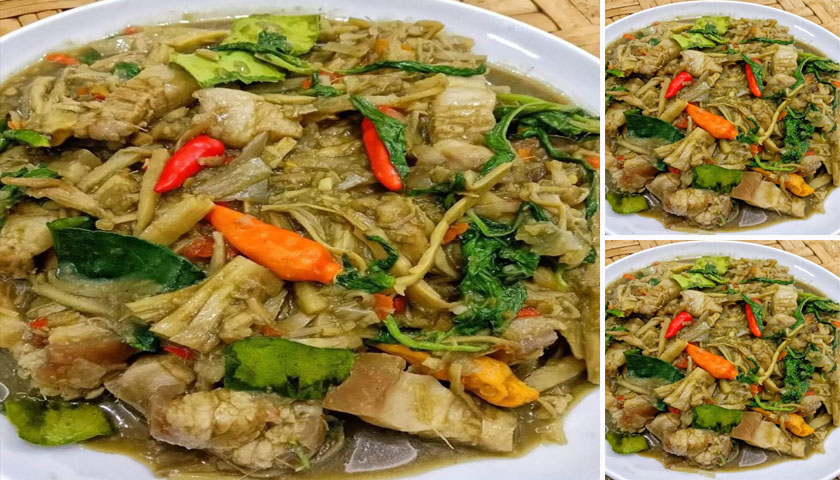 ถ้าใส่หมูสามชั้นลงไปมันหมูนุ่มๆ ฉ่ำๆกินผสมกับหน่อไม้มีกลิ่นหอมของใบแมงลัก มีน้ำพอคลุกคลิกพอได้เอา