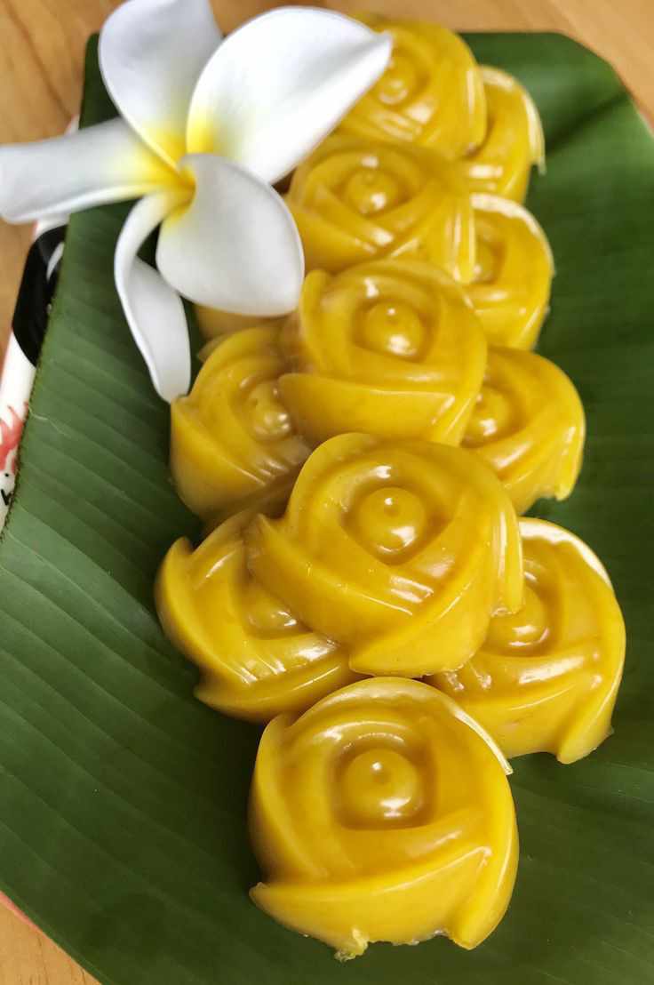 • ก่อนไป ปิดท้ายด้วยขนมฟักทองที่พักให้เย็นก่อนแกะออกจากพิมพ์ มีฟองอากาศเต็มเลย เราลืมเคาะพิมพ์ก่อนนึ่งค่ะ เคล็ดลับหนึ่งคือตักส่วนผสมที่เหลว ๆ หยอดลงไปก่อน แล้วเคาะ ๆ ให้เนื้อขนมกระจายตัวเต็มพิมพ์ ส่วนใครใช้ถ้วยตะไล หรือกระทงใบตอง ก็ตักใส่โลด ไม่ต้องพิถีพิถันมาก โรยหน้าด้วยมะพร้าวขูดใหม่กลิ่นหอม ๆ แค่นึกภาพก็ท้องร้องแล้ว
