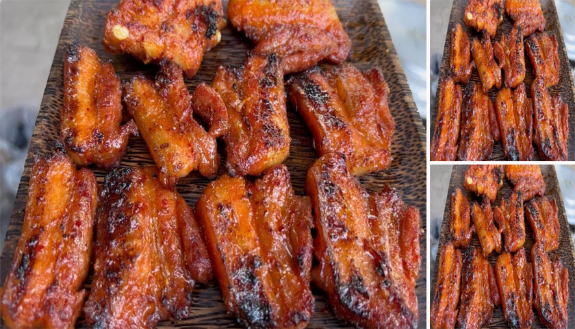 -หมักทุกอย่างให้เข้ากัน เรียงใส่ถาด แช่ถังน้ำแข็งทิ้งไว้ ก่อนเอามาย่างไปอ่อน