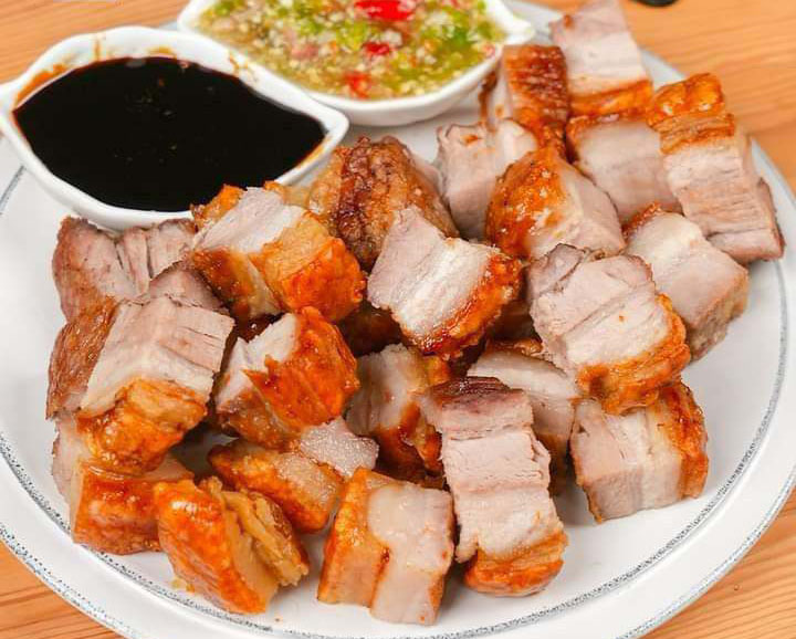 *เลือกหมูสามชั้นที่มีเนื้อหมูหนาๆ และมีชั้นมันหมูแทรกบางๆ หนังหมูไม่หนามาก จะทำให้ได้หมูกรอบที่เนื้อนุ่มกรอบนอกฉ่ำใน