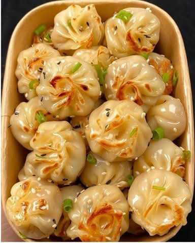 7.เบริ์นกะทะให้ร้อน ไฟอ่อน จากนั้นใส่เกี๊ยวลงไป รอจนฐานเก๊ยวสีเหลืองทองแล้วค้อยสตรีมไอน้ำคะ