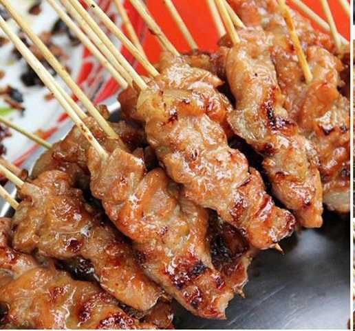 -ผสมทุกอย่างนวดกับหมู หมักไว้30นาที นำมาเสียบไม้ปิ้งจ้า