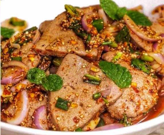 1.ล้างตับหมูให้สะอาด จากนั้นหั่นเป็นชิ้นบางๆ เพื่อให้ลวกสุกได้ง่ายและมีรสสัมผัสนุ่ม