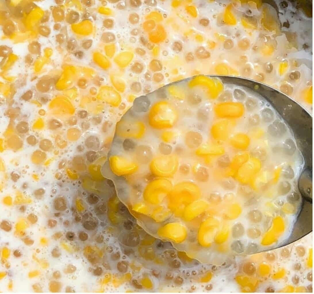 น้ำกะทิหอมข้าวโพดเข้มข้นกะทิ หวานกำลังดี หนึบหนับด้วยสาคู อร่อยด้วยข้าวโพดและมะพร้าวอ่อน ถ้วยเดียวไม่พอ เอาใจคนชอบทานข้าวโพด