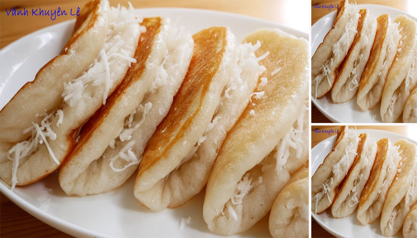 3. ครบเวลา >> ตั้งกระทะ ทาน้ำมันบางๆ เปิดไฟอ่อนๆ พอร้อนก็ ก็คนแป้งให้เข้ากันอีกที แล้วตักหยอดลงไป ปิดฝาไว้สักครู่ แป้งสุกแล้วจะมีลักษณะเป็นรูๆ ก็ใช้ได้