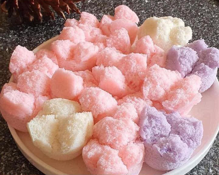 1.นำแป้งข้าวเจ้าใส่ภาชนะจากนั้นใส่น้ำลอยดอกมะลิให้พอนวดแป้งได้