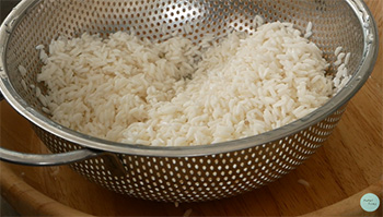 ◆ จากนั้นให้เทน้ำทิ้งแล้วพักให้ข้าวเหนียวสะเด็ดน้ำค่ะ
